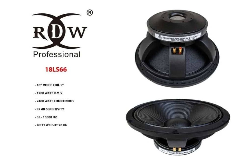Speaker Komponen RDW LS1808 adalah salah satu subwoofer profesional berukuran 18 inci yang dirancang untuk kebutuhan sound system lapangan (pro audio) atau hajatan. Speaker ini terkenal karena daya tahan dan performa bass yang kuat, didukung oleh voice coil berukuran besar.